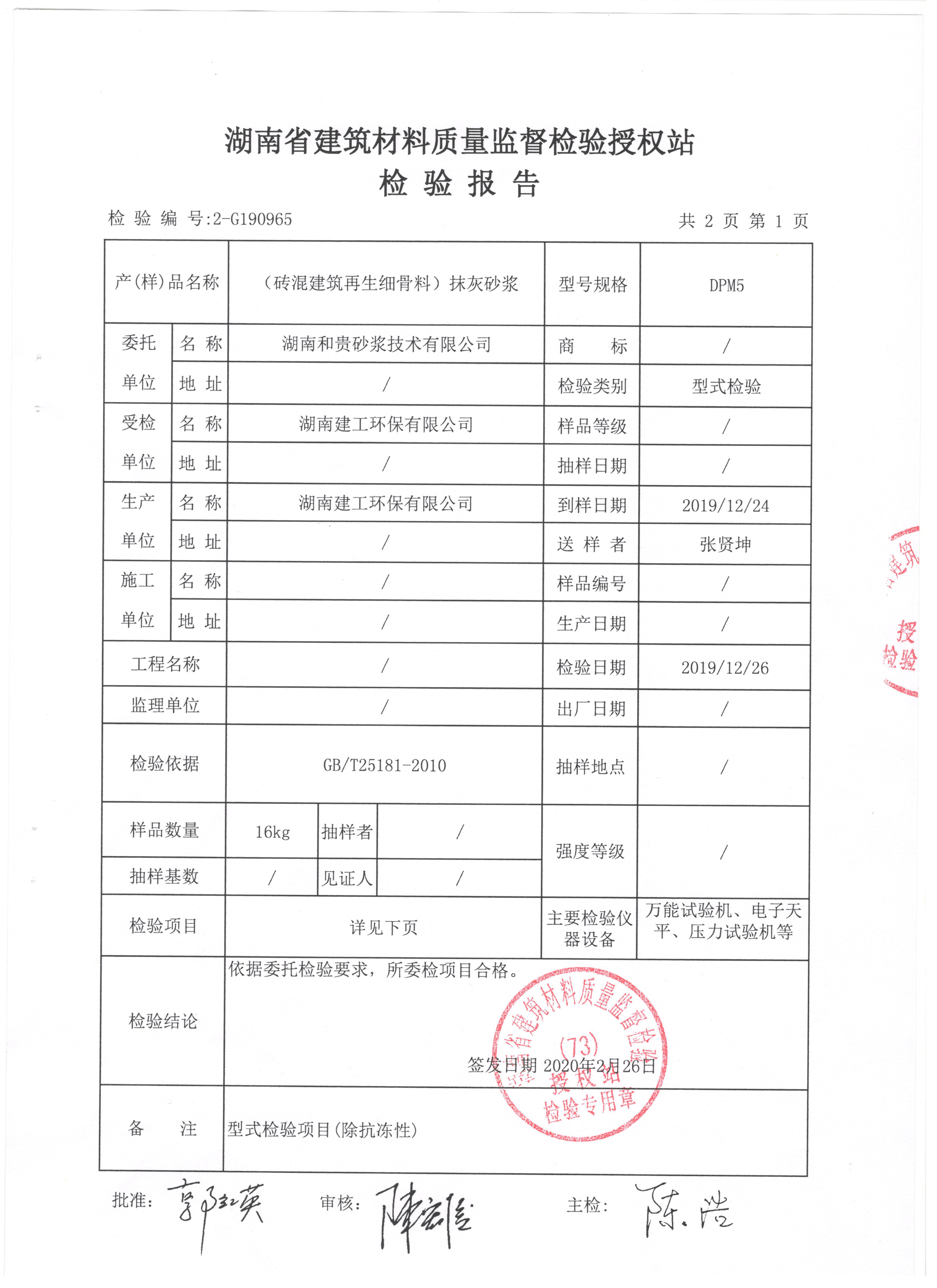湖南和贵利用建筑垃圾再生细骨料,经过多年的技术攻坚克难,成功研发(砖混建筑再生细骨料)抹灰砂浆和地面找平砂浆。采用建筑垃圾生产的新型绿色环保建筑材料,有效地促进建筑垃圾资源化高质量的综合利用。利用建筑垃圾研发的砂浆产品比同类产品性能更优、成本更低、施工更易。